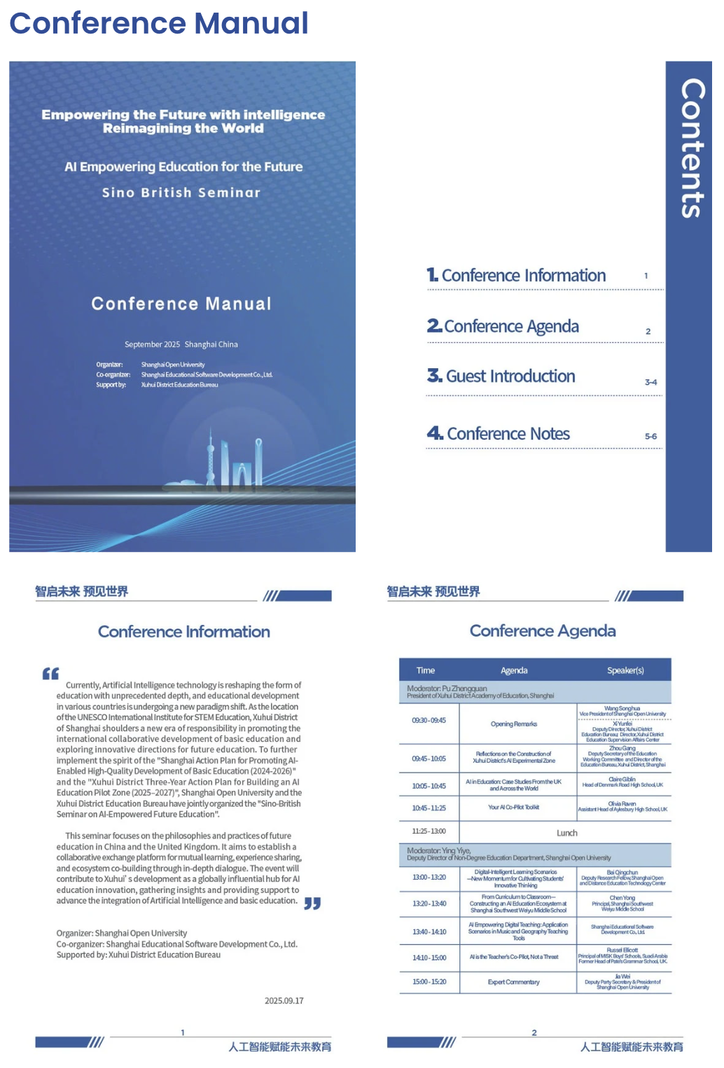 The seminar manual included a contents page, seminar information, the event agenda, profiles of distinguished Chinese and UK guests, and dedicated note pages. It served as a comprehensive guide to help attendees understand the seminar’s context, programme flow, and speaker backgrounds.