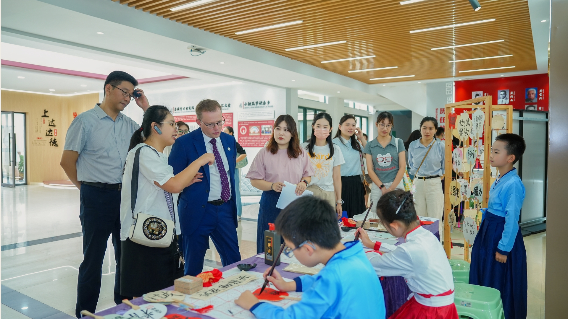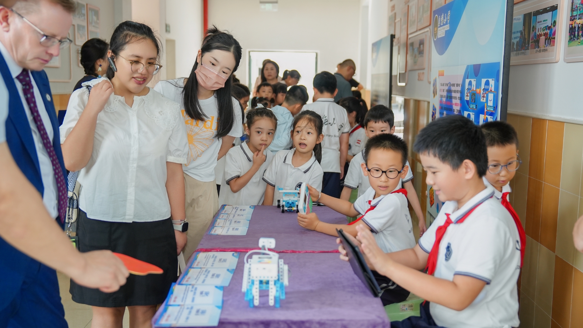 At Shanghai Primary School, the visit focused on demonstrating to Russel how AI is being integrated into everyday teaching and learning. The school showcased its use of artificial intelligence in the classroom, including a mathematics lesson where AI tools supported students’ problem-solving. Students also presented creative projects involving the design and production of innovative products. A highlight of the visit was a robot demonstration, illustrating the school’s commitment to embedding technology into instruction and fostering meaningful, hands-on learning experiences.